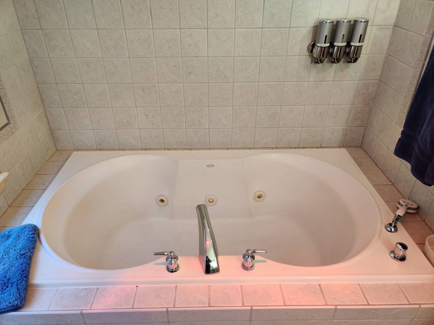 A spacious two-room corner suite on the main level of the mansion, includes a separate sitting room with an electronic fireplace, Queen bed, luxurious Jacuzzi tub for two plus a second private bathroom. Ideal for the romantic getaway that you have been promising yourself.